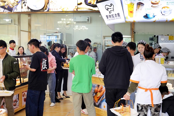 慶典結(jié)束后,各位領(lǐng)導(dǎo)及企業(yè)代表共同參觀“蛋糕魔法屋”西點(diǎn)創(chuàng)業(yè)示范店,看到店內(nèi)紅火的生意,不禁稱(chēng)贊起這群即將畢業(yè)的學(xué)子們。教學(xué)質(zhì)量一直是學(xué)院的重點(diǎn)工作之一,老師教好、學(xué)生學(xué)好是全體長(zhǎng)沙新東方人的心愿,西點(diǎn)創(chuàng)業(yè)示范店的開(kāi)辦也是對(duì)學(xué)院教學(xué)質(zhì)量的一次檢驗(yàn),學(xué)生們學(xué)了兩年,是否能很好地在實(shí)體店熟練操作?如果創(chuàng)業(yè)開(kāi)店,又能否經(jīng)營(yíng)好?這些,都是他們要通過(guò)示范店實(shí)操去鞏固的,相信學(xué)子們?cè)趯W(xué)院老師和領(lǐng)導(dǎo)的關(guān)心下,走出校門(mén)時(shí)都是一個(gè)個(gè)優(yōu)秀的西點(diǎn)師、成功的創(chuàng)業(yè)者。