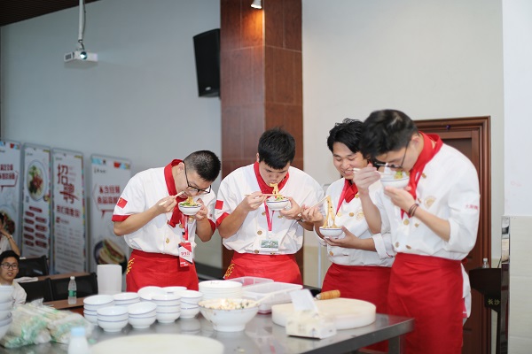 隨后王總監(jiān)帶來了幾道陜西特色面食的制作,將公開課現(xiàn)場氣氛推向了高潮。相比于米飯,面食更能讓人感受到手工技藝的高超,人情的溫度。本是一根根簡單的面條,經(jīng)過王總監(jiān)的烹制,就成了一碗碗色香味俱全的美食。