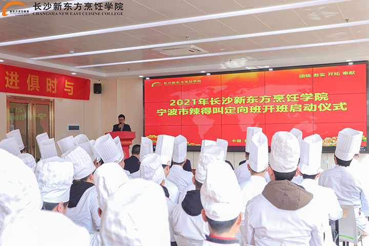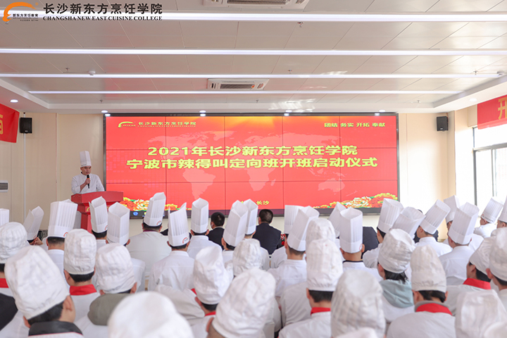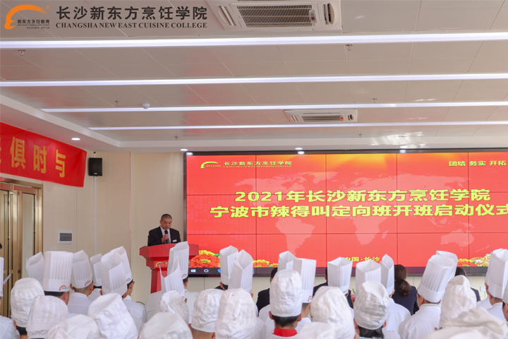 長(zhǎng)沙新東方烹飪學(xué)校校區(qū)負(fù)責(zé)人張道付主任對(duì)定向班如期開(kāi)班表示真心地祝賀,他希望同學(xué)們一定要珍惜這次學(xué)習(xí)的機(jī)會(huì),志存高遠(yuǎn)、勤奮鉆研,為個(gè)人的成長(zhǎng)成才奠定堅(jiān)實(shí)的基礎(chǔ);要嚴(yán)格要求自己,誠(chéng)實(shí)守信,提高綜合素質(zhì)。最后,送給同學(xué)們一句話:書山有路勤為徑,學(xué)海無(wú)涯苦作舟!
