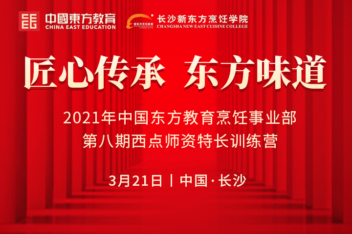 匠心傳承,東方味道。2021年中國(guó)東方教育烹飪事業(yè)部第八期西點(diǎn)師資特長(zhǎng)訓(xùn)練營(yíng)將于3月21日在長(zhǎng)沙新東方烹飪學(xué)院隆重啟幕。...